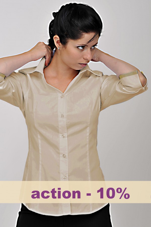 dámská košile s 3/4 rukávem a ozdobnou paspulkou, manžeta s rozparkem, propasovaný střih