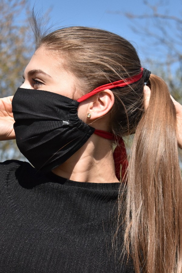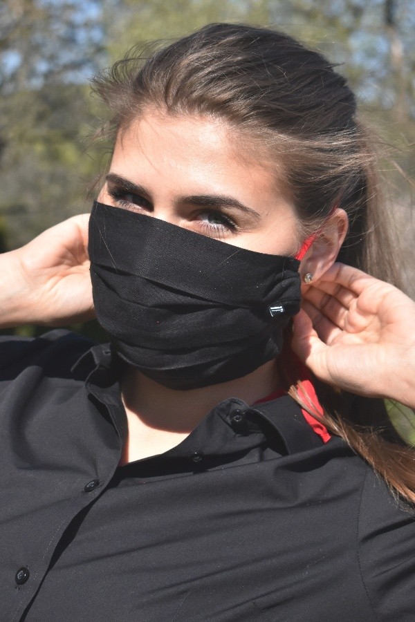 Rouška jednovrstvá, střih AZIMUT, lehoučká, snadnější dýchání, díky postrannímu švu neodstává na tvářích. Zavazování za krk (lze posadit na temeno hlavy, nebo za uši a vést dolů na krk) materiál šňůrek je velice příjemný, pohodlný i pro celodenní nošení - zaváže se na délku podle potřeby při prvním nošení, potom už lez přetahovat přes hlavu bez rozvazování. roušku vyrábíme v černé barvě, šňůrky lze vyrobit v mnoha odstínech – specifikujte Váš požadavek. Materiál roušky: 100% bavlna Materiál šňůrek: 96% viskóza, 4% elastan