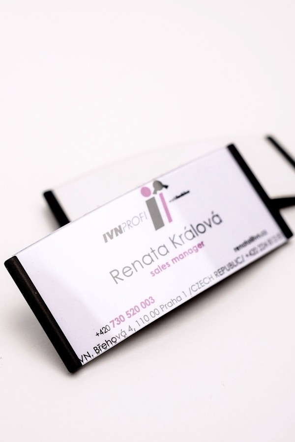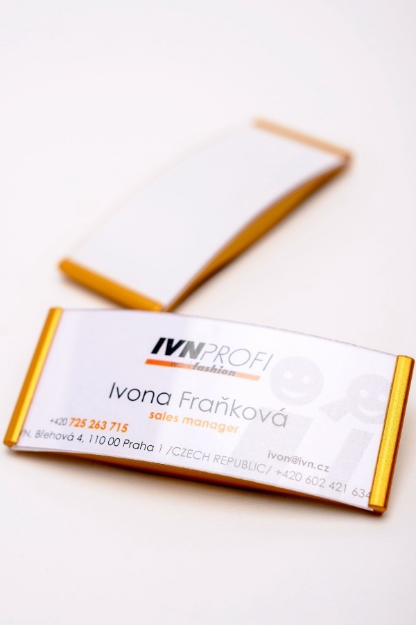elegantní lehké jmenovky v kovovém vzhledu o rozměru 8cm x 3,2 cm, jednoduché umístění pomocí magnetického patentu, k dostání ve třech základních barvách