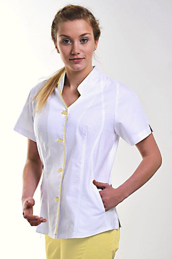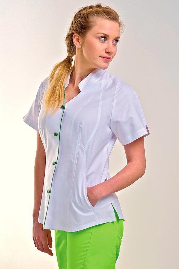 pracovní halena s barevnou výpustkou na předním díle a rozparky na rukávech pro větší komfort
