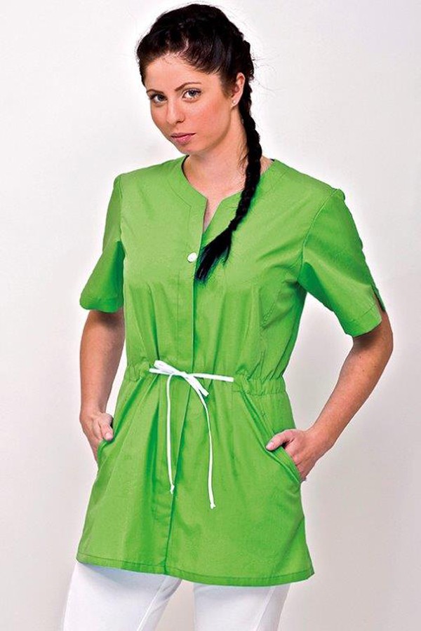 slušivá dámská halena, kapsy, stažení v pase na šňůrku, jeden knoflík, skryté zapínání, barvy: růžová, fialková, hnědá, zelená, jahodová, temně fialová, tyrkysová, žlutá, bílá