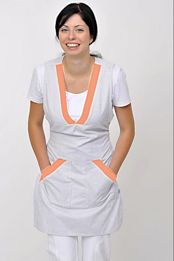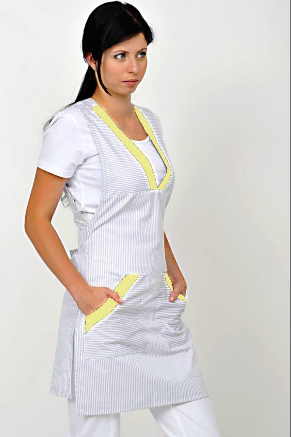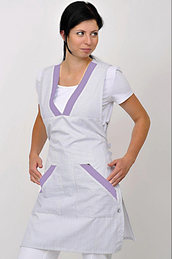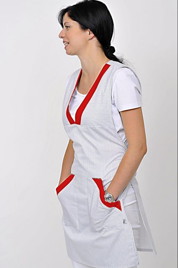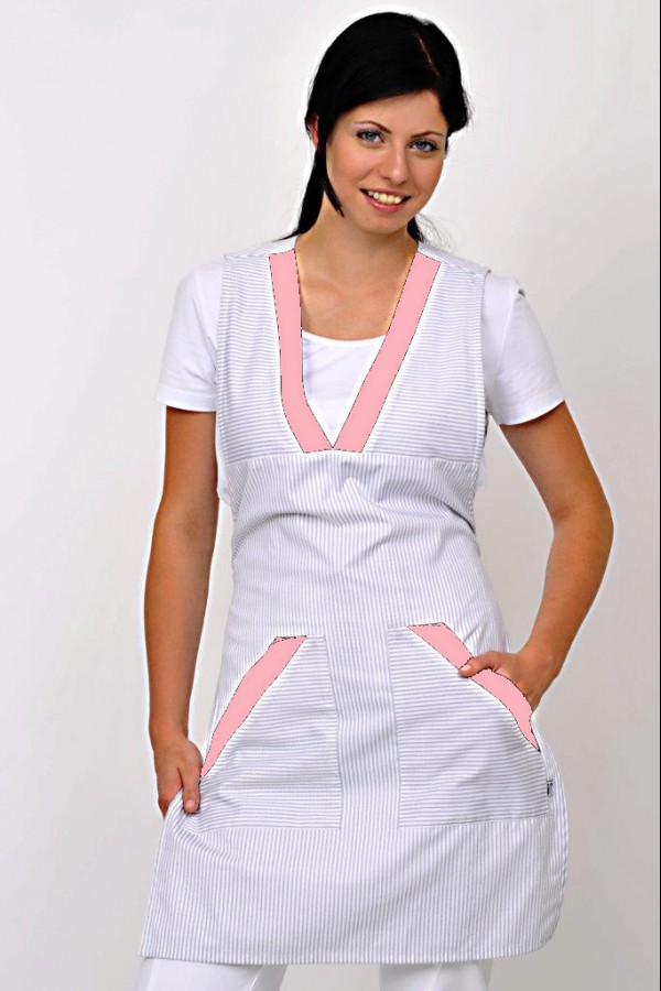 dámský mušketýr pro pokojské s barevným rozlišením v průkrčníku a kapsách se zavazováním na zádech