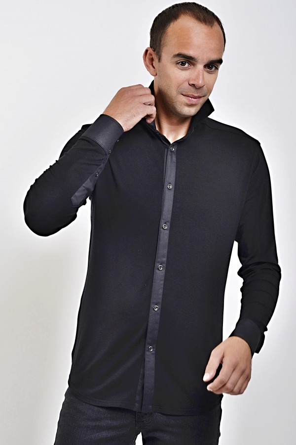 pánská košile jejíž přední díl, zadní díl i rukávy jsou z pleteniny zajišťují nositeli maximální komfort a přitom košile vypadá velmi elegantně