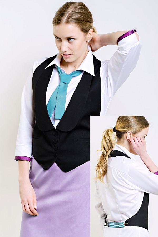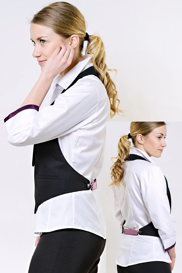vesta dámská s odkrytými zády, dobře padnoucího střihu, na Zadním díle je spínátko